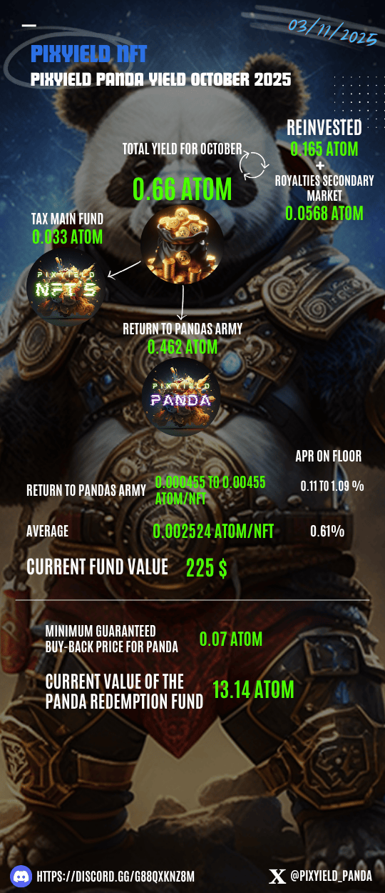 <figure><img src="https://2419035174-files.gitbook.io/~/files/v0/b/gitbook-x-prod.appspot.com/o/spaces%2FFy5k1julN6Kww1HGrevi%2Fuploads%2FbUsM8QVvnpdsPAC9EqVu%2FPixYield%20Panda%20Fund%20Return%20Payment%20Report%20for%20October%202025.png?alt=media&#x26;token=14d1c2b4-e311-4391-97bf-b05f7eaabb01" alt=""><figcaption></figcaption></figure>